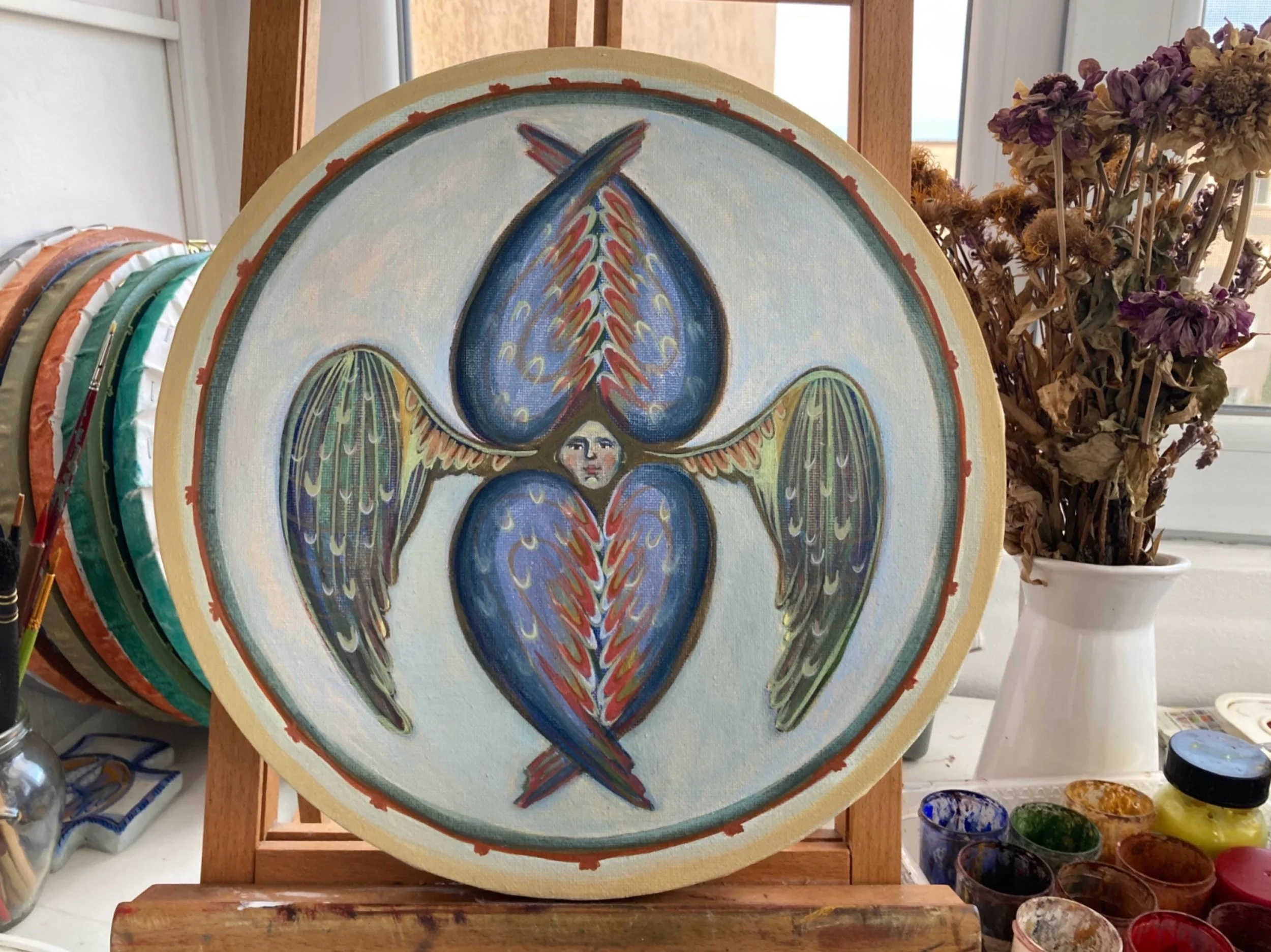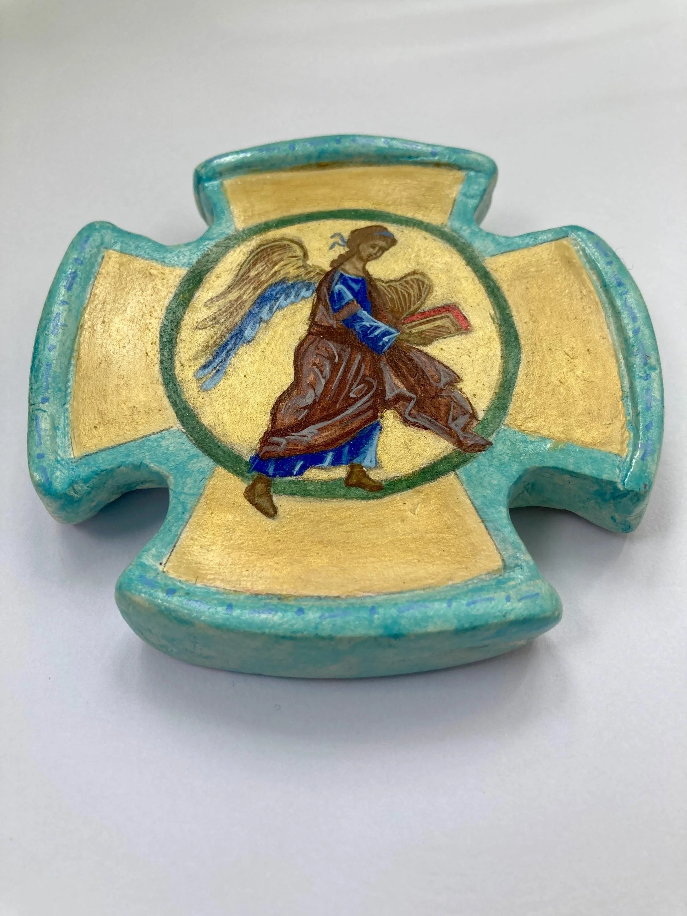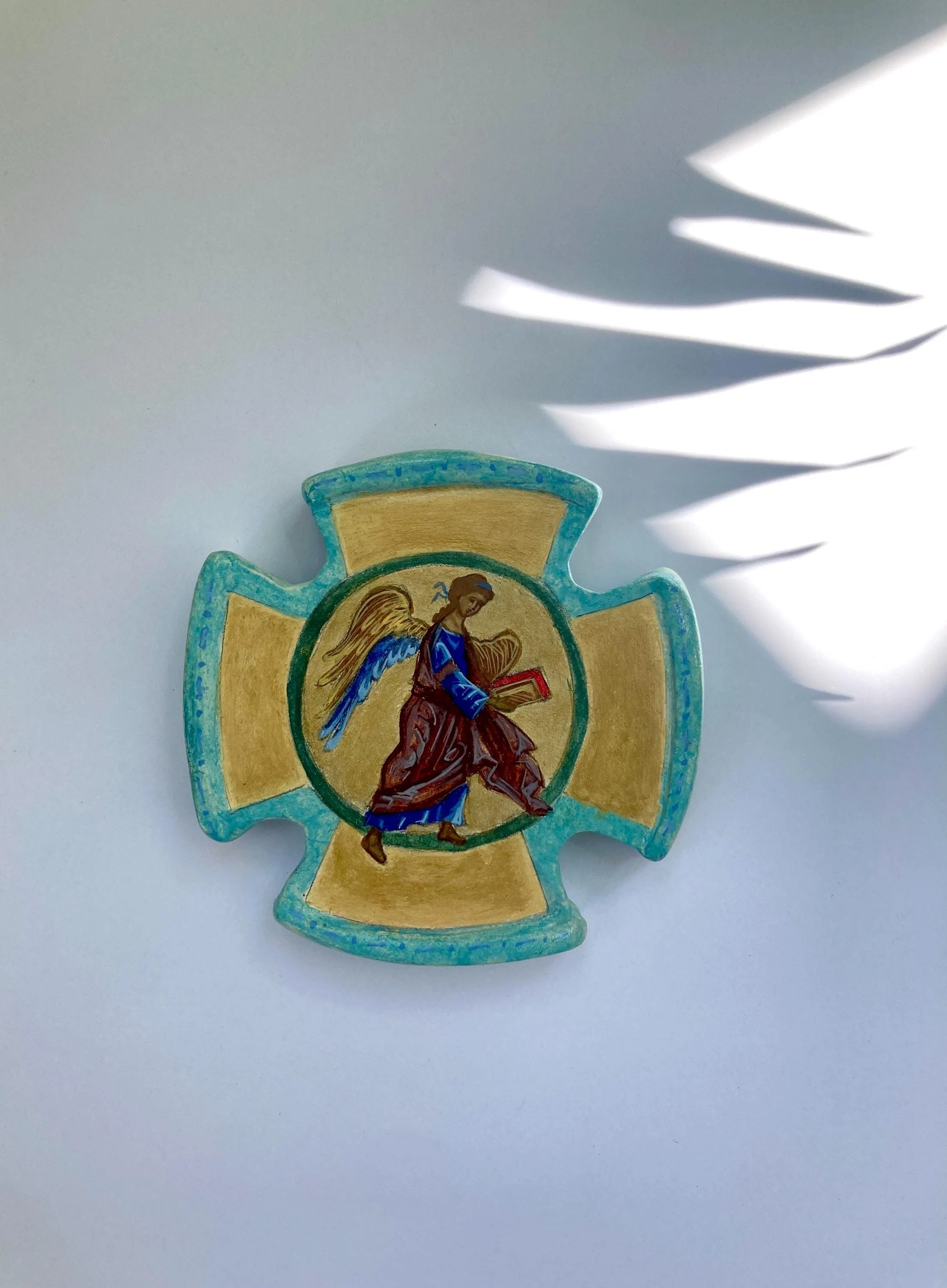 This luminous collection of original artworks invites stillness, reflection, and prayer. Rooted in Byzantine iconography and shaped by a contemporary sensibility, each piece honors the quiet presence of angels as symbols of guidance, love, and protection.